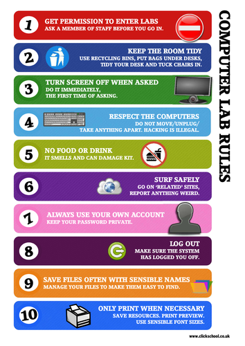 Outline Five Precautionary Guidelines Of Using The Computer Lab. / Computer Rules Poster Set by La-Nette Mark | Teachers Pay Teachers. For most scenarios a comments section is included to outline the differences in control measures where no reoccupancy is expected or to provide further technical information. Who works in our academic writing service? We do not at any time disclose client's personal information or credentials to third parties. We give anonymity and confidentiality a first priority when it comes to dealing with client's personal information. Given the chance, they should provide input to the laboratory designers to ensure that the facilities meet the needs of the functions of the laboratory.